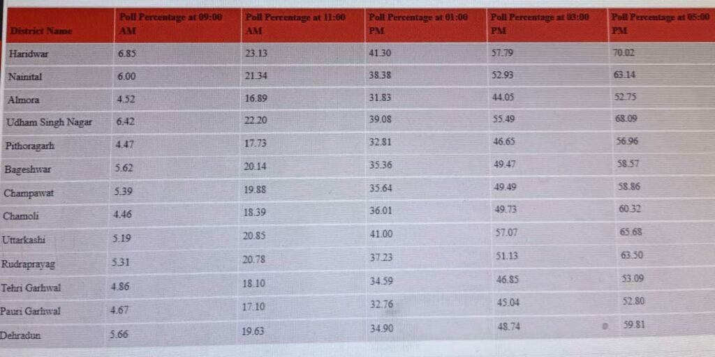 उत्तराखंड में शाम 5 बजे तक 59.37 फीसदी मतदान, हरिद्वार जिले में सबसे ज्यादा वोटिंग