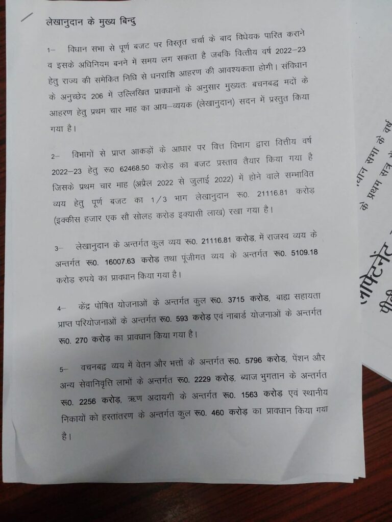 मंगलवार को पहले दिन राज्यपाल के अभिभाषण के बाद सीएम ने नए वित्तीय वर्ष के प्रथम चार माह के लिए लगभग 21 हजार 116 करोड़ रुपये का लेखानुदान पेश किया. सात ही सदन की कार्यवाही कल 11 बजे तक के लिए स्थगित की गई।